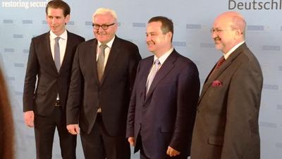 Berlin, 12 April 2016 - The OSCE Chairperson-in-Office and German Foreign Minister Frank-Walter Steinmeier welcomed Serbia’s and Austria’s Foreign Ministers Ivica Dačić and Sebastian Kurz as well as the OSCE Secretary General Lamberto Zannier for an OSCE Troika meeting in Berlin today.