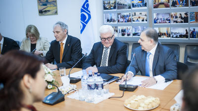 YEREVAN, 30 June 2016 – OSCE Chairperson-in-Office and German Foreign Minister Frank-Walter Steinmeier visited the premises of the OSCE Office in Yerevan on 30 June to discuss its work and activities and to meet with civil society representatives, while in Armenia as part of his official visit to the three countries of the South Caucasus.