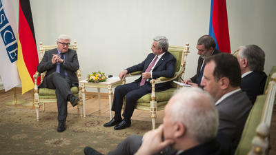 “It is a positive development that the situation in the conflict zone has become calmer,” Steinmeier said after his meeting with Armenia’s President Serzh Sargsyan and talks with Foreign Minister Edward Nalbandian. “Nonetheless, renewed escalation remains a real threat as long as negotiation efforts stagnate. In order to allow for progress in the peace process we need concrete measures to stabilise the ceasefire and to foster mutual trust.”