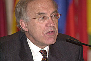 Amb. Daan Everts, Personal Representative of the Chairman-in-Office, at an OSCE seminar in Tashkent focusing on drugs trafficking, 17 March 2003.