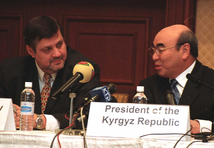 Askar Akaev, President of the Kyrgyz Republic (right), and Jan