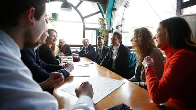 KYIV, 17 January 2017 - Members of the Youth Contact Group, established by the OSCE to promote inter-regional dialogue in Ukraine, today shared their visions of the future with OSCE Chairperson-in-Office and Austria’s Foreign Minister Sebastian Kurz during a walking tour of Kyiv today.