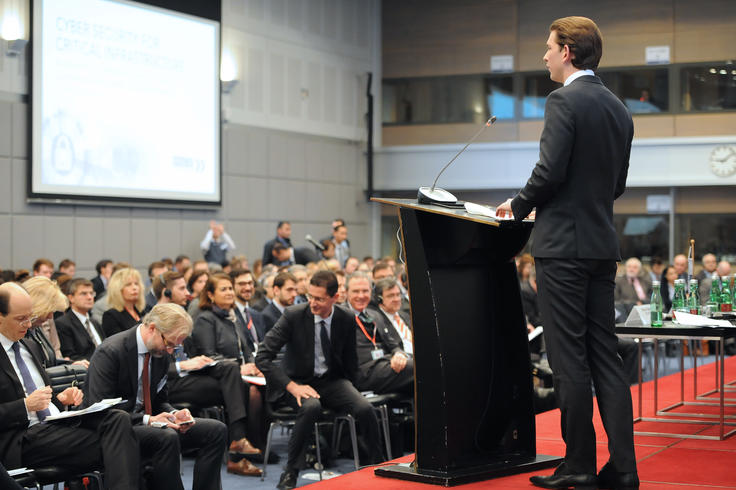 OSCE Chairperson-in-Office and Austrian Federal Minister for Europe, Integration and Foreign Affairs Sebastian Kurz, delivering his opening speech at the Cyber Security for Critical Infrastructure Conference, Vienna, 15 February 2017.