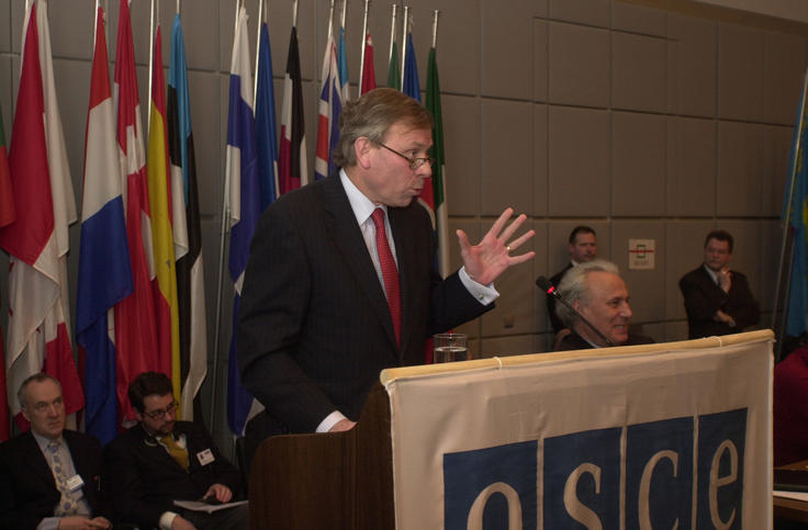 The OSCE Chairman-in-Office, Jaap de Hoop Scheffer, addressing the Winter Meeting of the OSCE Parliamentary Assembly in Vienna, 20 February 2003.