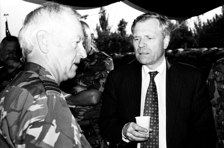 During his visit to Kyrgyzstan, the OSCE Chairman-in-Office also visited Dutch soldiers based on Manas airbase to support the Dutch military contingent in Afghanistan, 9 July 2003.
