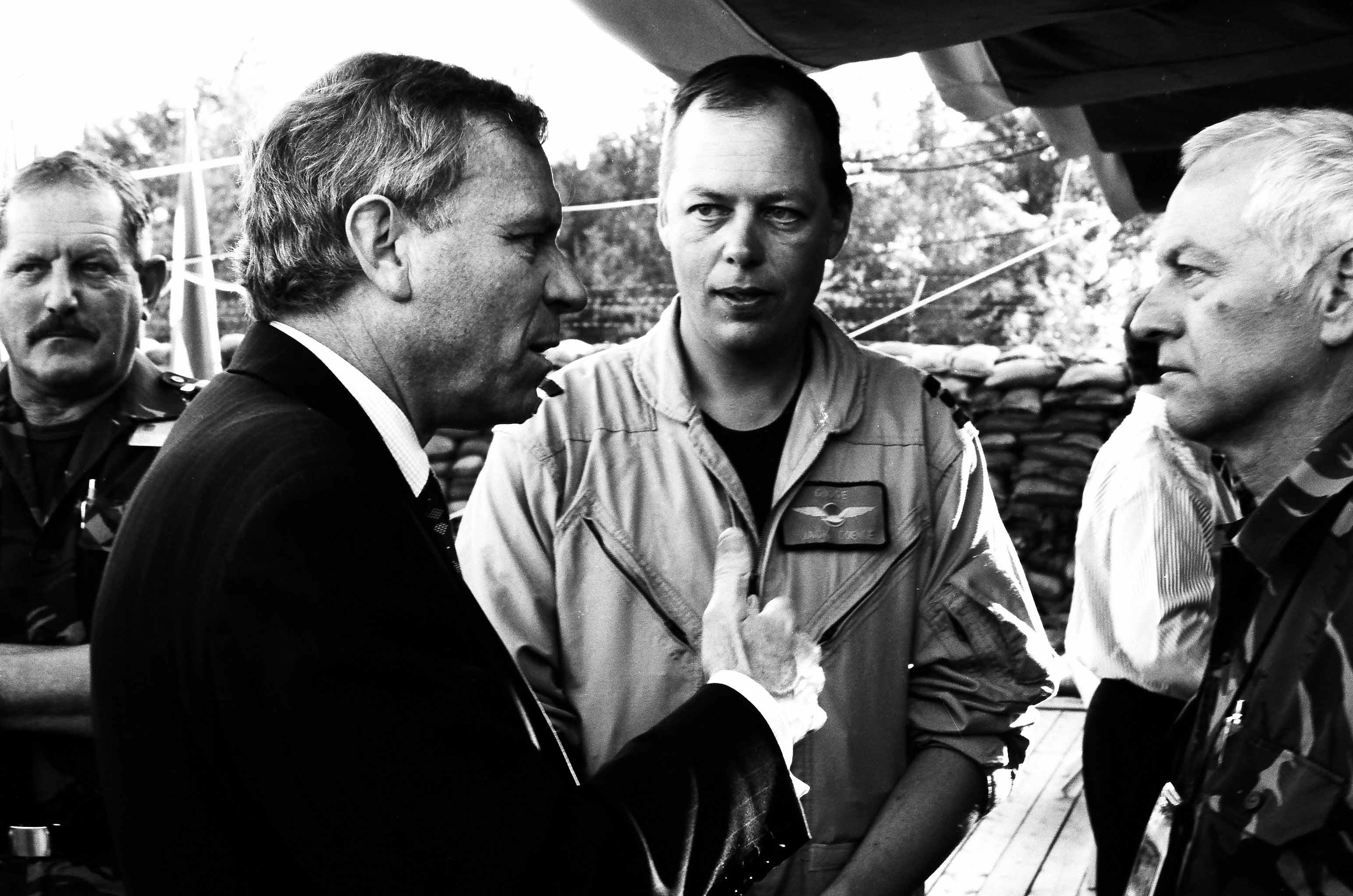 During his visit to Kyrgyzstan, the OSCE Chairman-in-Office also visited Dutch soldiers based on Manas airbase to support the Dutch military contingent in Afghanistan, 9 July 2003.