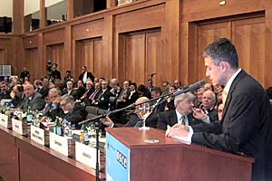 Chairman Solomon Passy addressed more than 500 delegates from the 55 OSCE States and their 10 partner countries in the second OSCE Conference on Anti-Semitism, Berlin, 28 April 2004.