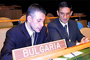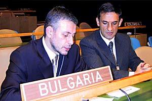 OSCE Chairman-in-Office, Bulgarian Foreign Minister Solomon Passy (left), with Ambassador Stefan Tafrov, at the United Nations in New York 25 February 2004.