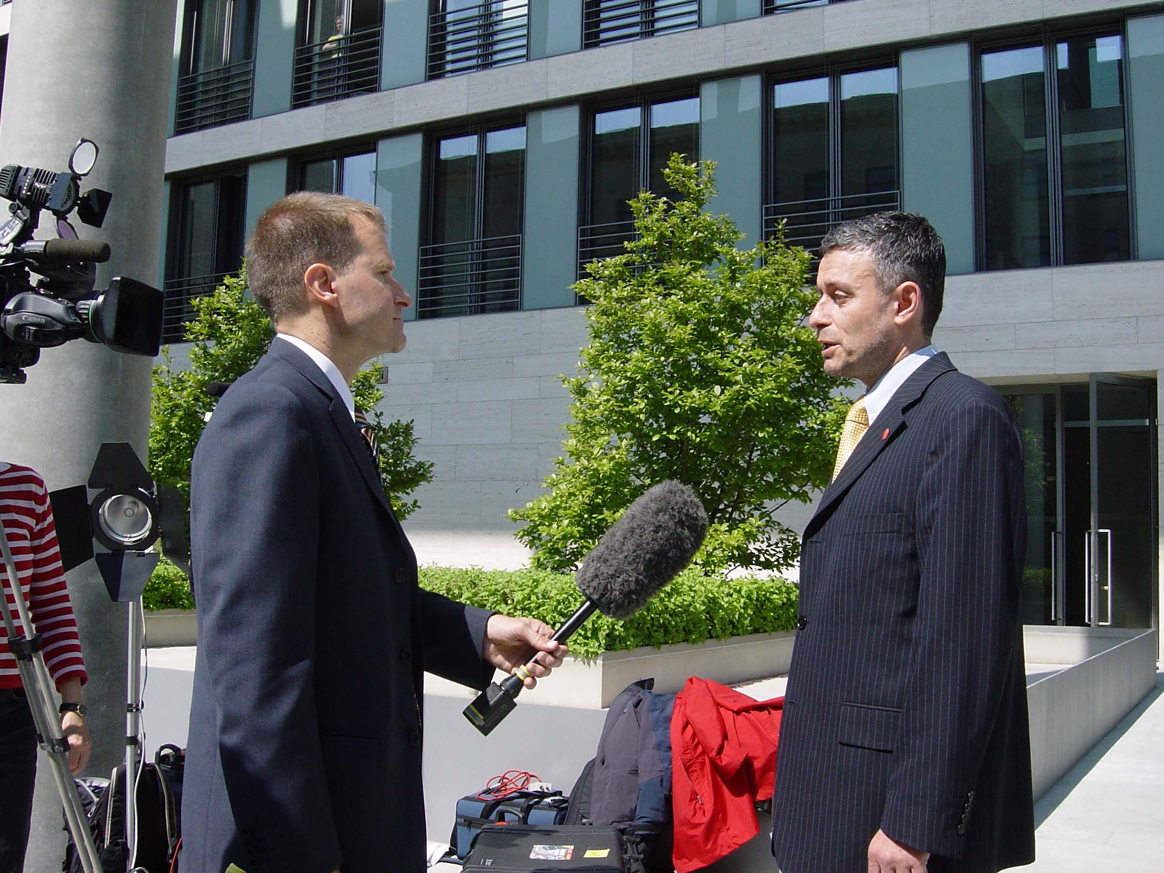 CNN's Chris Burns interviews OSCE Chairman-in-Office Solomon Passy about the second OSCE Conference on Anti-Semitism, Berlin, 28 April 2004.