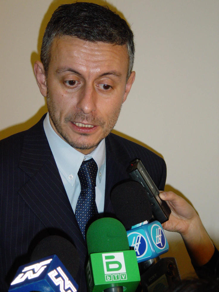 OSCE Chairman-in-Office, Bulgarian Foreign Minister Solomon Passy, talks to reporters after the first OSCE Troika meeting of 2004, Vienna, 16 January.