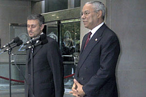 OSCE Chairman-in-Office Solomon Passy holds a joint press conference with US Secretary of State Colin Powell, in Washington, D.C, 5 May 2004.