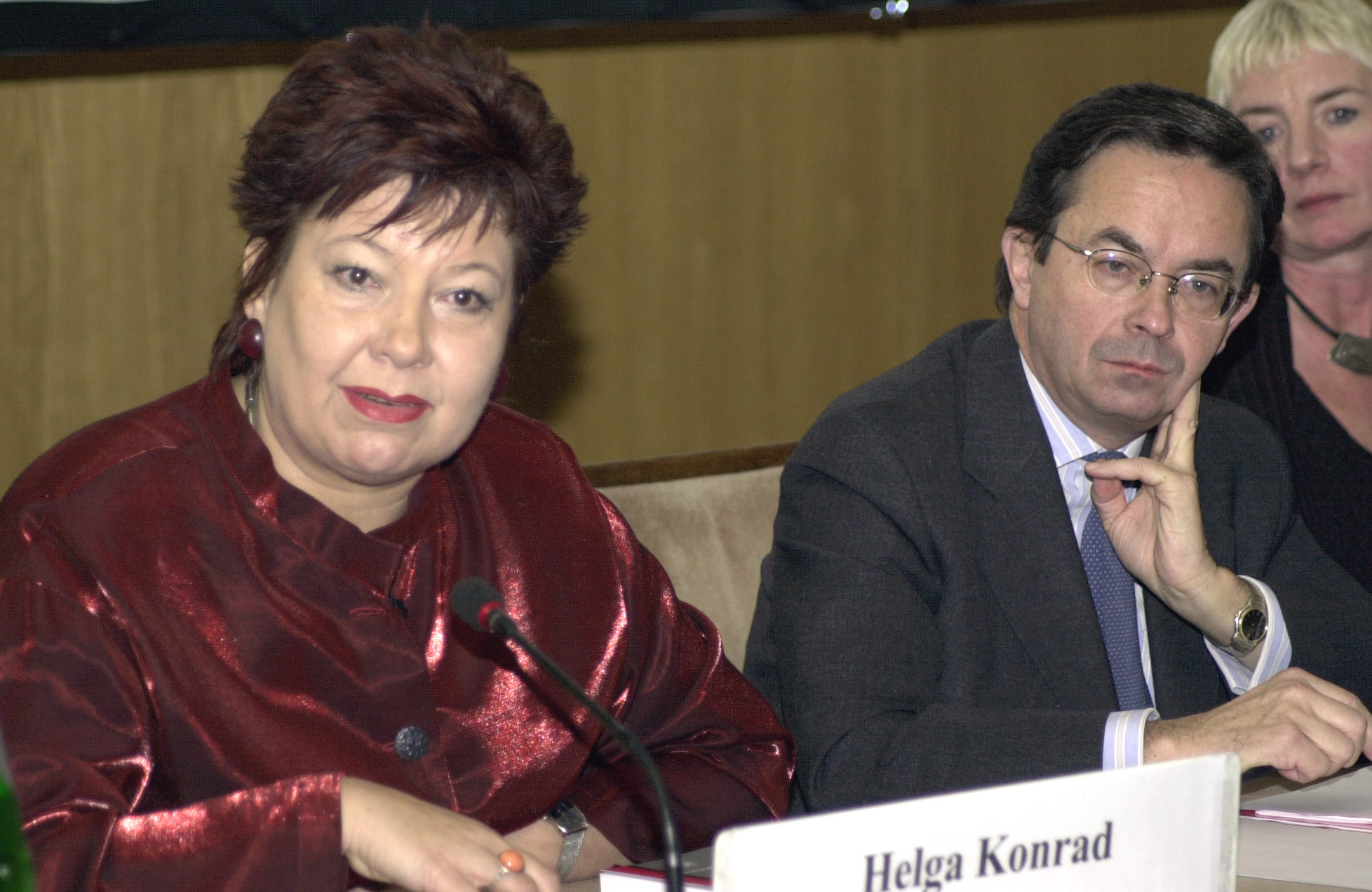 Helga Konrad is the new OSCE Special Representative on Combating Trafficking in Human Beings. Konrad and ODIHR Director Christian Strohal answer questions on trafficking at a Vienna press conference, December 2003.