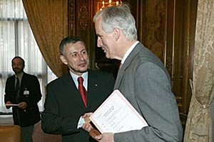 OSCE Chairman Solomon Passy with French Foreign Minister Michel Barnier (right), 16 June 2004 in Paris at an OSCE conference on hate crimes and racist, xenophobic, anti-Semitic propaganda on the Internet.