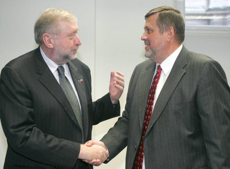 OSCE Chairman-in-Office Dimitrij Rupel (left) meets OSCE Secretary General Jan Kubis in Vienna, 14 January 2005.