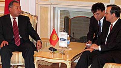 On what is his second official trip to the country, the Secretary General met the President of the Kyrgyz Republic, Kurmanbek Bakiev, the Minister of Foreign Affairs, Alikbek Djekshenkulov, and the newly elected Speaker of the Parliament, Marat Sultanov.