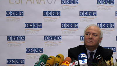 MADRID, 4 April 2007 - The OSCE Chairman-in-Office, Spanish Foreign Minister Miguel Angel Moratinos, expressed his concerns and called all parties in Ukraine today to find a swift solution to the political crisis.