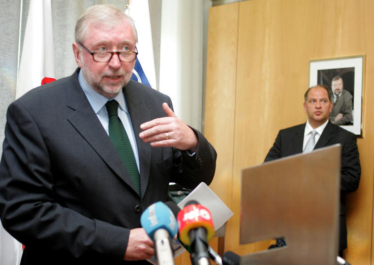 OSCE Chairman-in-Office Dimitrij Rupel speaks at a press conference in Ljubljana about the first seven months of the Slovenian OSCE Chairmaship, 25 July 2005.
