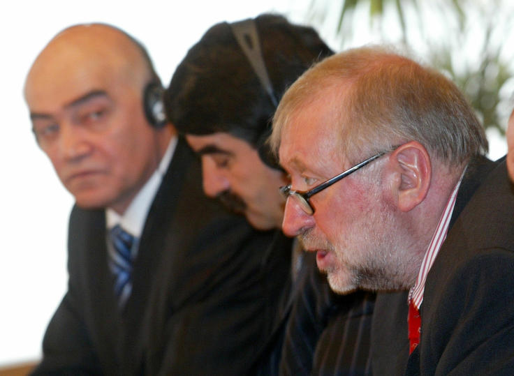 OSCE Chairman-in-Office Dimitrij Rupel (right) opens a meeting of the Joint Control Commission on the Georgian-Ossetian conflict at Brdo, near Ljubljana, 15 November 2005.