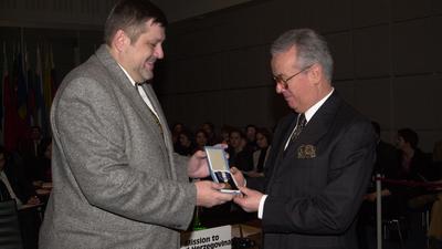 VIENNA, 6 February 2002 - Ambassador Liviu Bota, Head of the Permanent Mission of Romania to the Organization for Security and Co-operation in Europe and Chairman of the OSCE Permanent Council in 2001, has been awarded the OSCE Medal for his contribution to the Organization's activities and achievements.