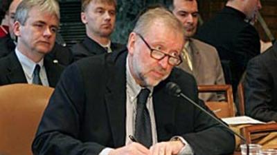 OSCE Chairman-in-Office Dimitrij Rupel, recently addressing the United States Helsinki Commission in Washington D.C., 8 March 2005. (BOBO/Kristina Kosec) Photo details