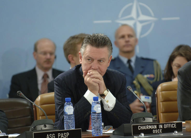 OSCE Chairman-in-Office Karel De Gucht prepares to address a meeting of the North Atlantic Council at NATO headquarters in Brussels, 25 October 2006.