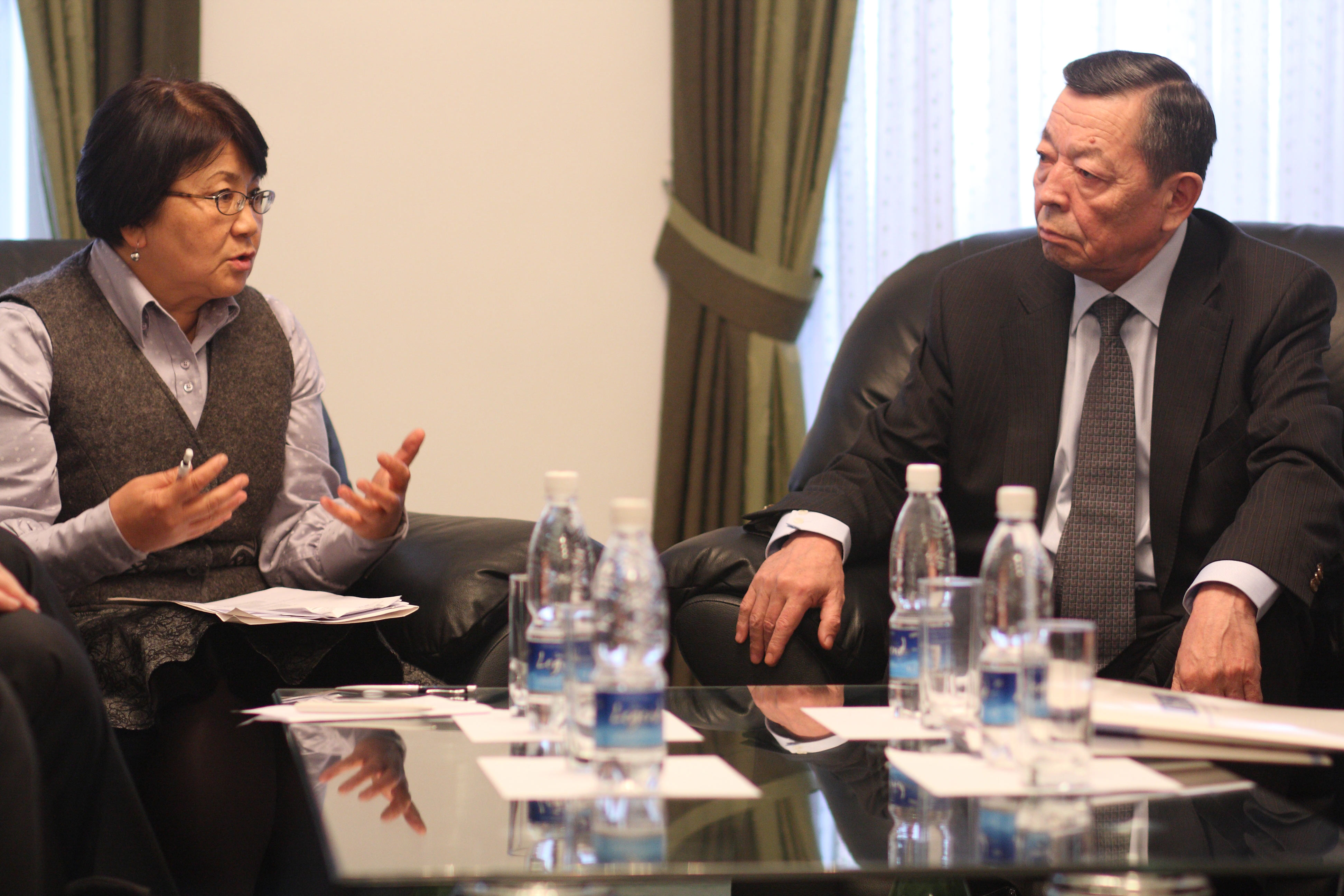 Zhanybek Karibzhanov (r), Special Envoy of the OSCE Chairperson-in-Office, meets Roza Otunbayeva, Kyrgyzstan's provisional administration leader, Bishkek, 9 April 2010.