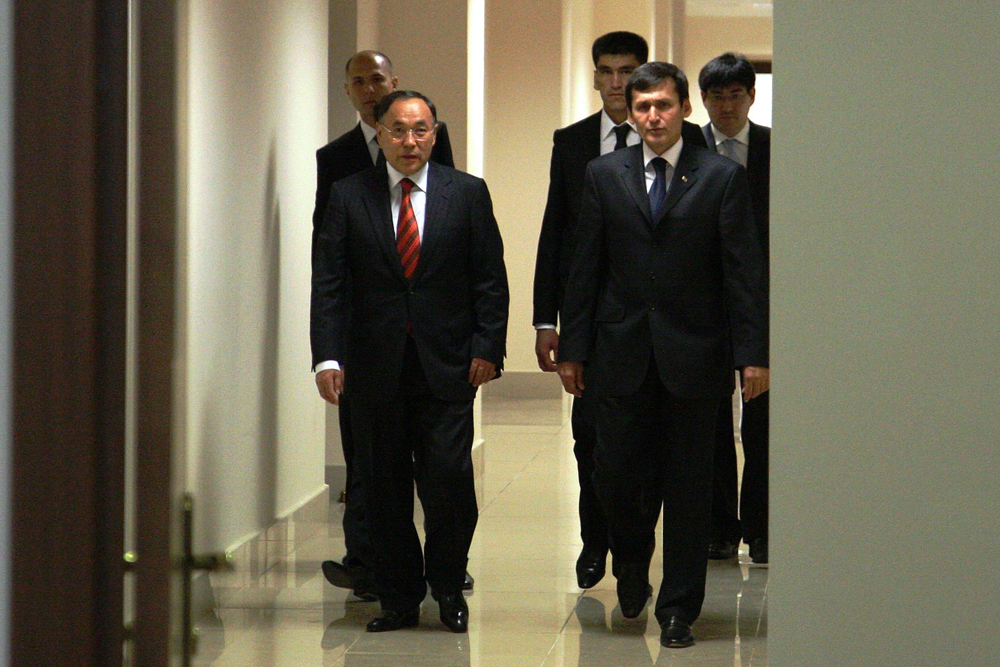 OSCE Chairperson-in-Office, Kazakhstan's Secretary of State and Foreign Minister Kanat Saudabayev (l), with Turkmenistan's Deputy Prime Minister and Foreign Minister Rashid Meredov, Ashgabat, 23 June 2010.