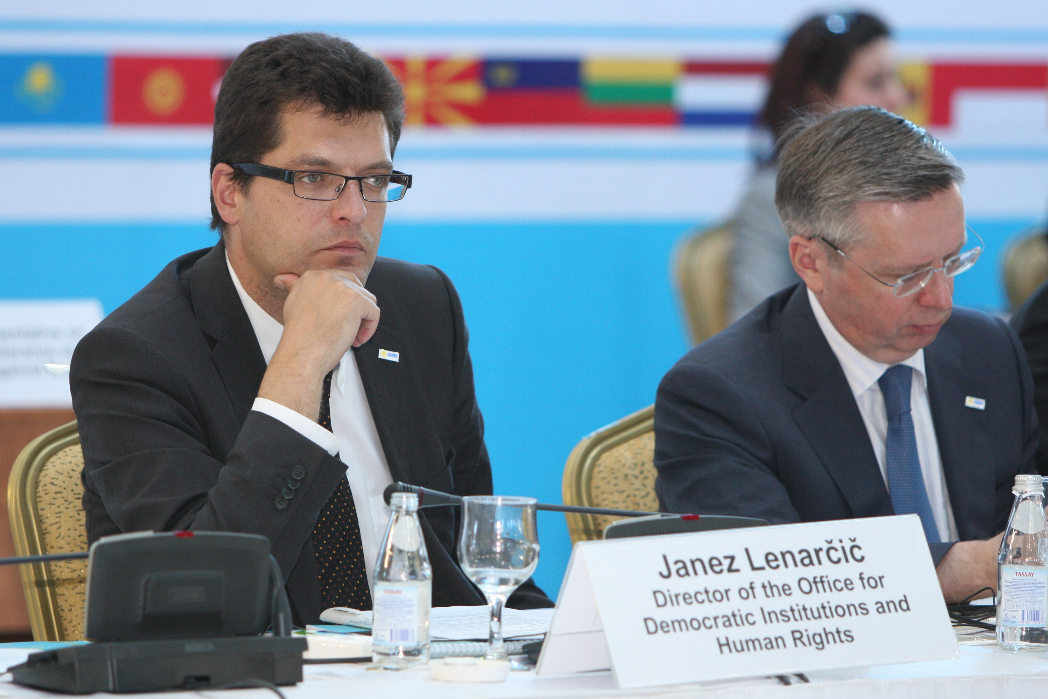 ODIHR Director Ambassador Janez Lenarcic (l) and Kazakhstan's Deputy Minister of Foreign Affairs Konstantin Zhigalov at the High-Level Conference on Tolerance and Non-Discrimination, Astana, 29 June 2010.