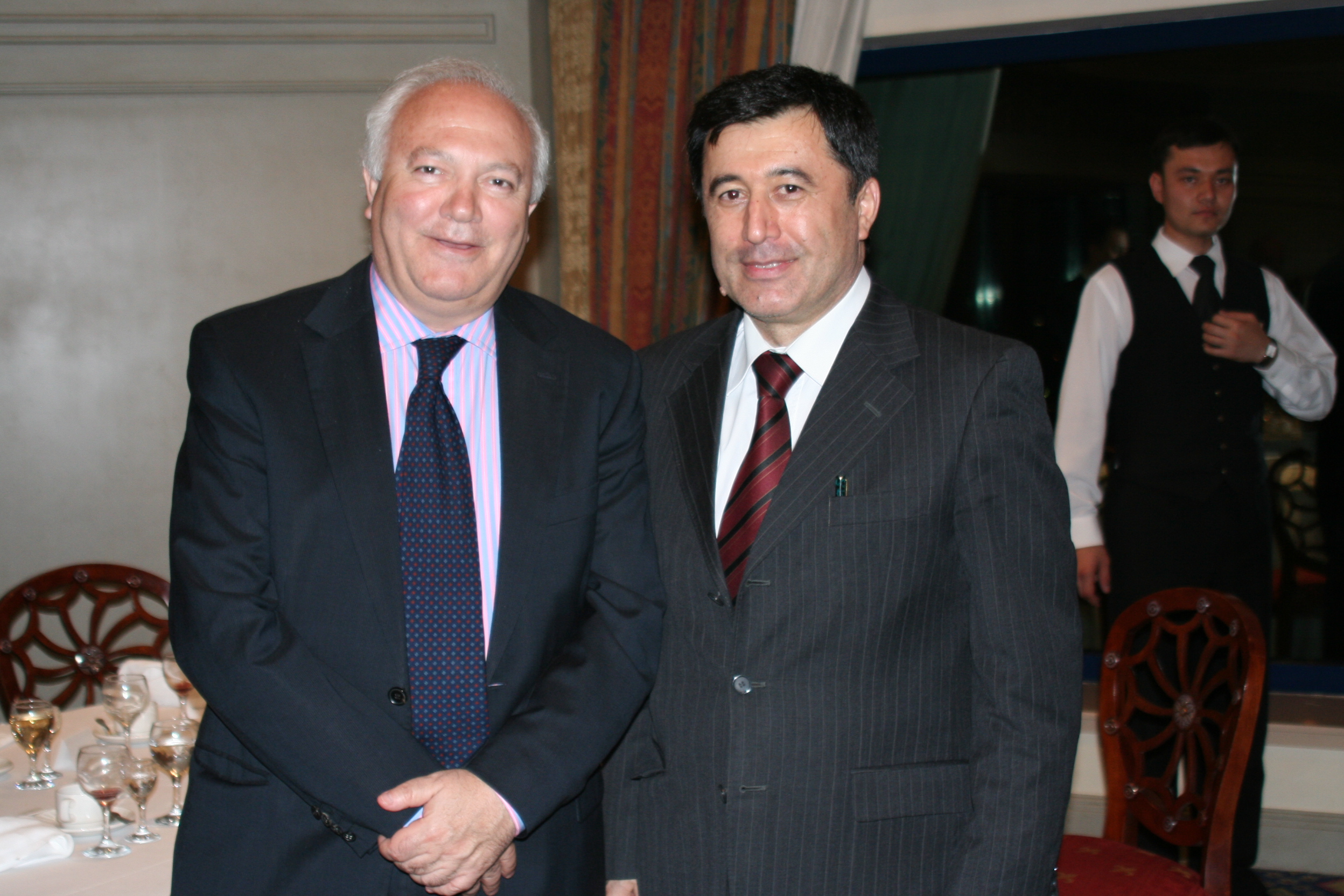 Uzbek Foreign Minister Vladimir Norov with OSCE Chairman Miguel Angel Moratinos (left) in Tashkent, 12 April 2007.