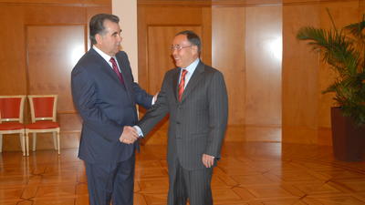 DUSHANBE, 19 May 2010 - The OSCE Chairperson-in-Office, Kazakhstan's State Secretary and Foreign Minister Kanat Saudabayev today stressed the importance of Tajikistan as a key partner for OSCE in the region in his meetings with the President of Tajikistan Emomali Rahmon and Foreign Minister Hamrokhon Zarifi.