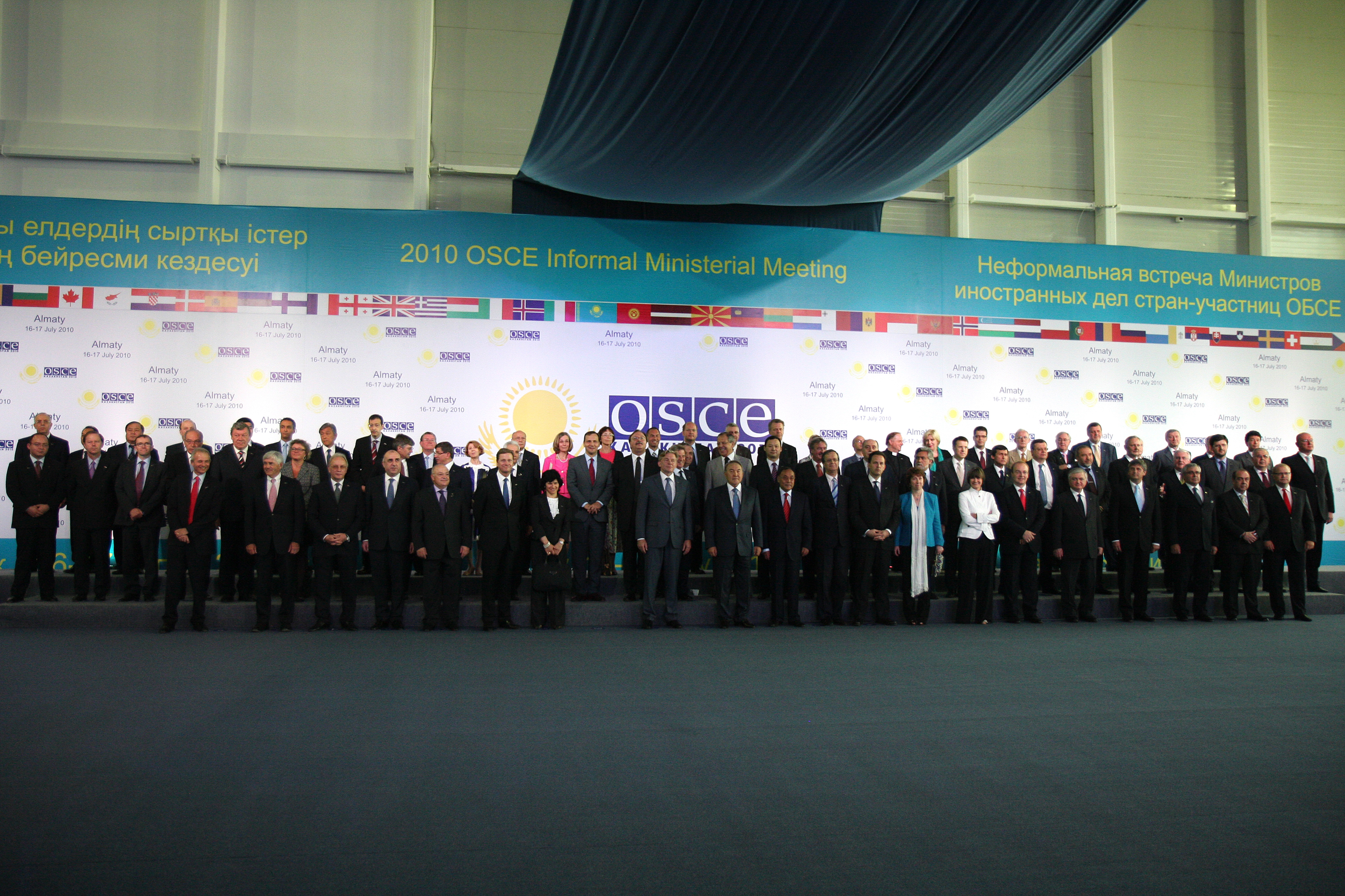 Ministers pose for a family photo at the OSCE Informal Ministerial in Almaty, 17 July 2010.