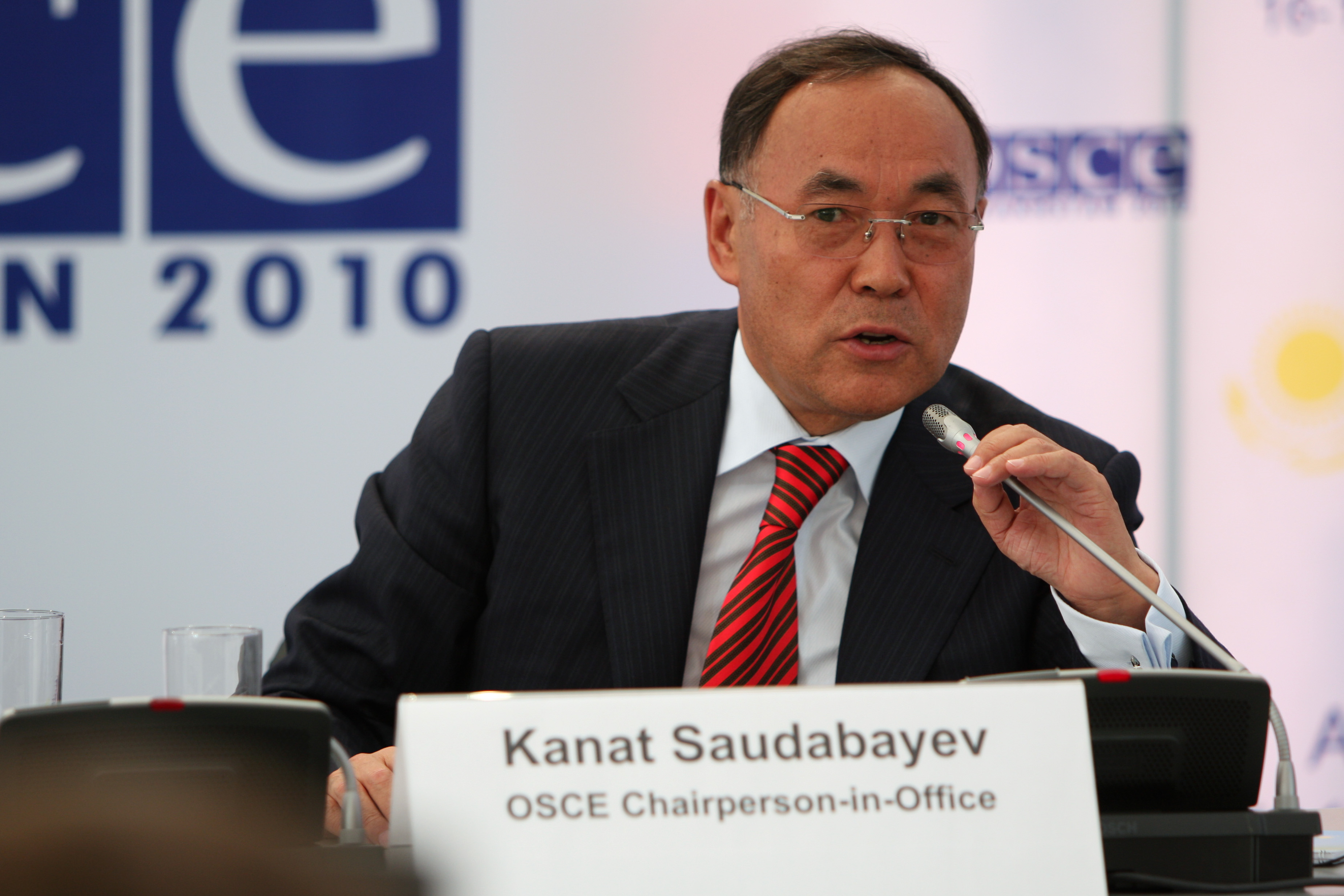 OSCE Chairperson-in-Office, Kazakhstan's Secretary of State and Foreign Minister Kanat Saudabayev, at a news conference during the Informal Ministerial meeting in Almaty, 17 July 2010.