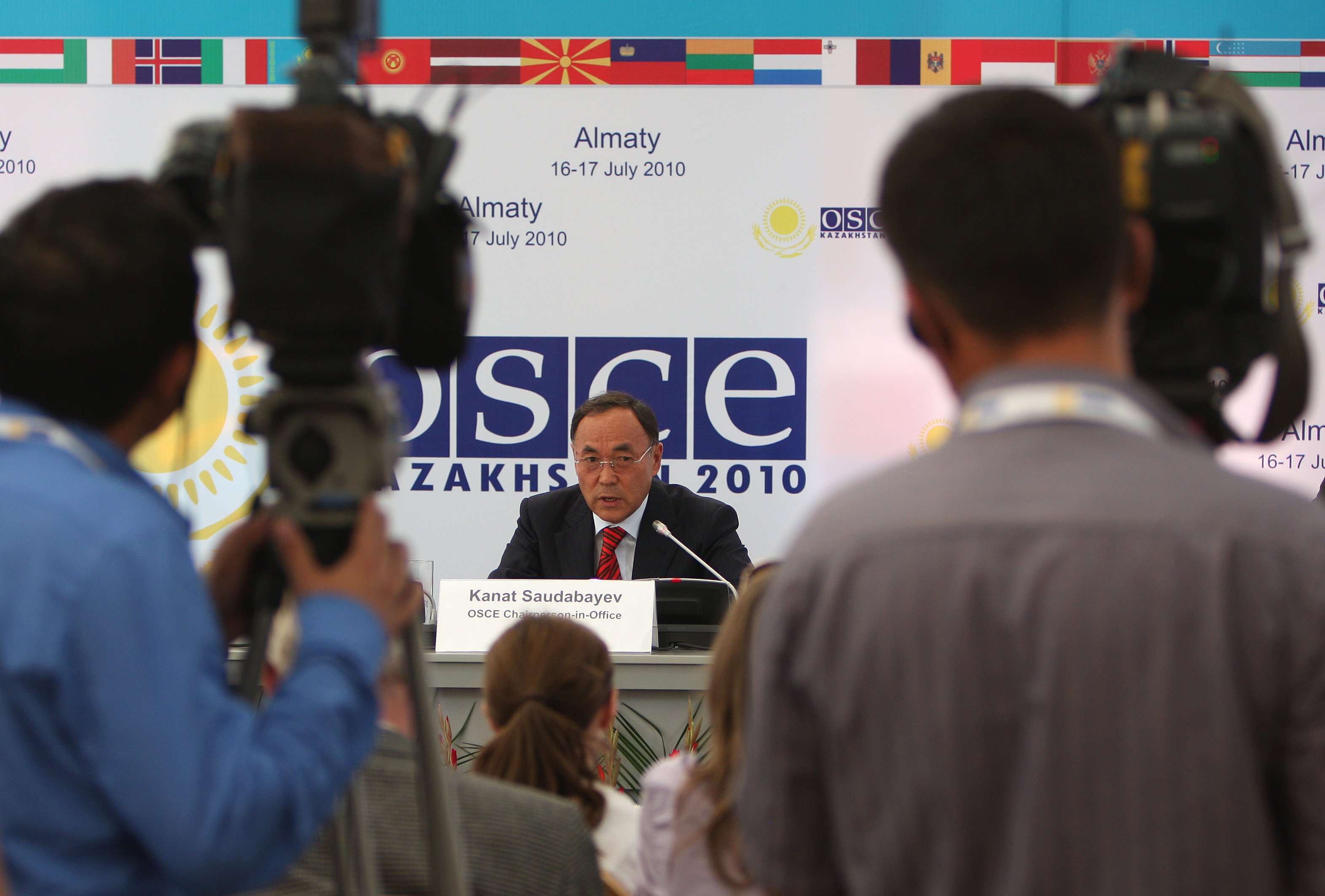 OSCE Chairperson-in-Office, Kazakhstan's Secretary of State and Foreign Minister Kanat Saudabayev, at a news conference during the Informal Ministerial meeting in Almaty, 17 July 2010.