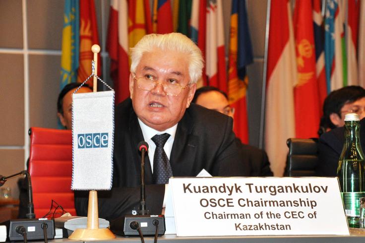 Kuandyk Turgankulov, Chairman of Kazakhstan's Central Election Commission, addresses an expert meeting on the use of electronic voting in OSCE participating States, Vienna, 16 September 2010.