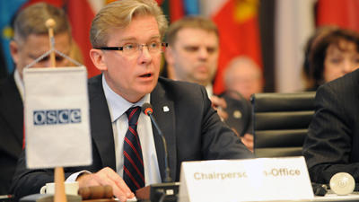 He said the Chairmanship would push for a resumption of formal “5+2” negotiations on Moldova, use the Geneva process to rebuild trust and work to restore a meaningful OSCE presence in Georgia; and support greater engagement by the Minsk Group Co-Chairs to re-energize political negotiations over Nagorno-Karabakh.