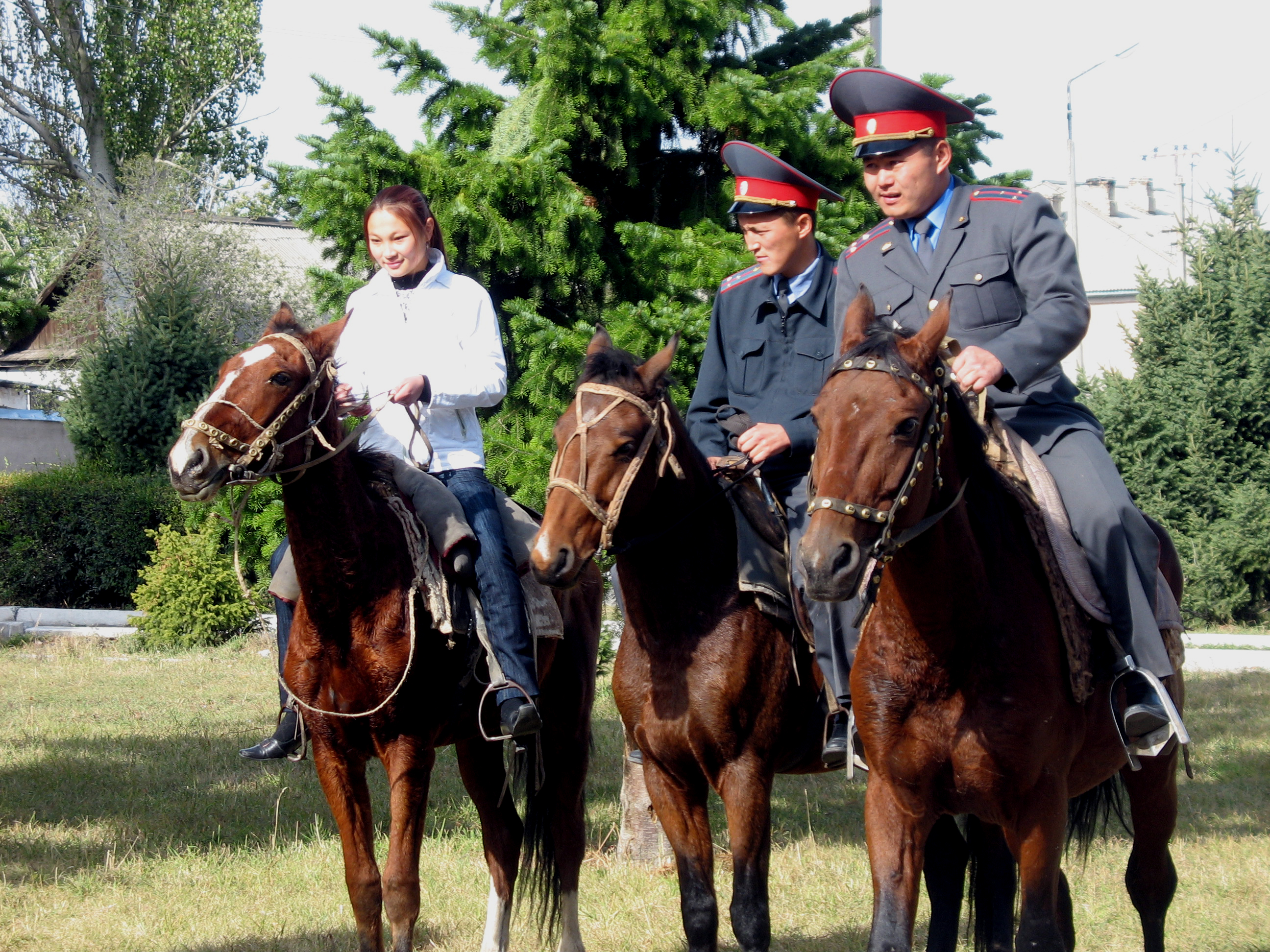 Police cavalry meet the local community at the Police Open Day in Karakol, Issykkul Oblast, which was supported by the OSCE Centre in Bishkek's Police Reform Project, 6 October 2007.