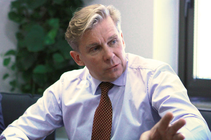 The OSCE Chairperson-in-Office, Lithuanian Foreign Minister Audronius Ažubalis speaking to journalists. Vienna, 24 February 2011.