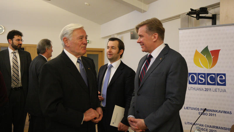 Lithuania's former President Valdas Adamkus addresses the special lunch session of an 'OSCE Talks' seminar in Vilnius, 5 April 2011.