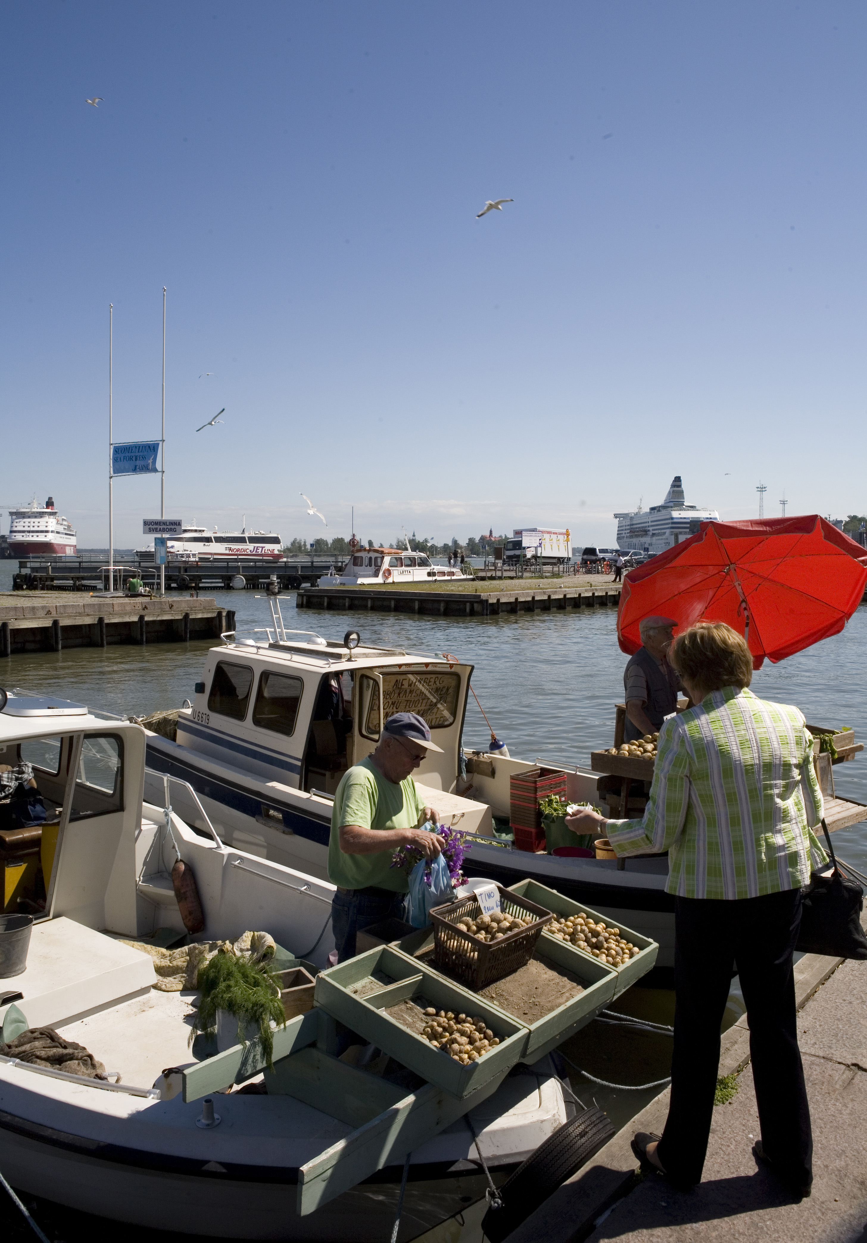 Fishermen sell their catch directly from their boats at the Helsinki Market Square