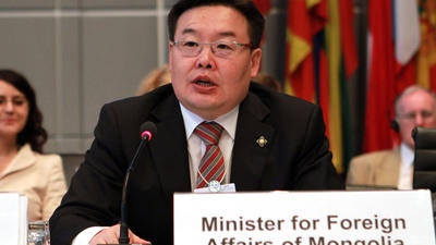 VILNIUS, 28 October 2011 - The OSCE Chairperson-in-Office, Lithuanian Foreign Minister Audronius Ažubalis, today received a letter from Mongolia’s Minister of Foreign Affairs and Trade, Gombojav Zandanshatar, formally expressing Mongolia’s willingness to join the OSCE as a participating State.