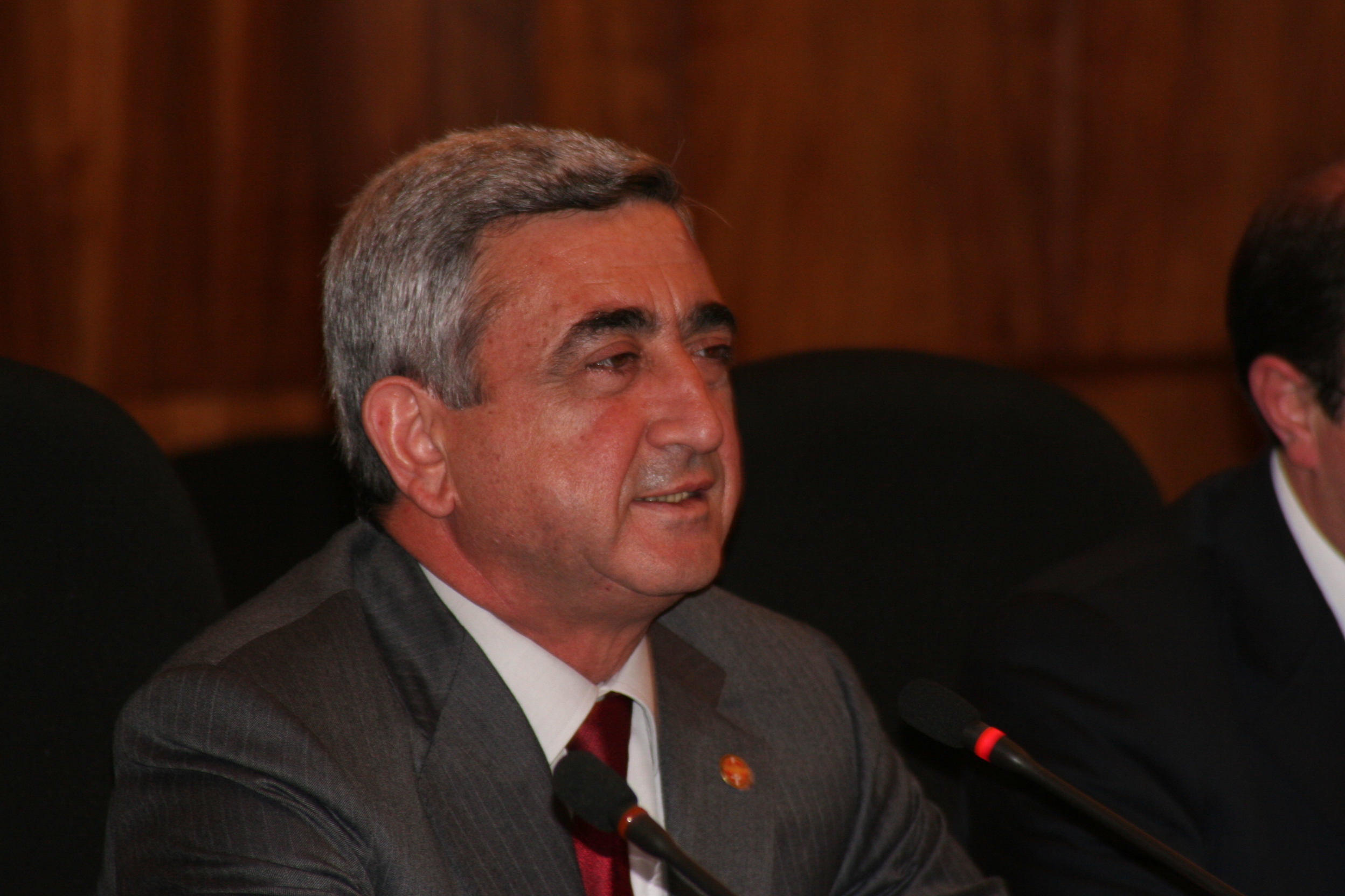 Armenian President-elect Serge Sargsyan during a meeting with the OSCE Chairman-in-Office, Finnish Foreign Minister Ilkka Kanerva. Yerevan, 26 February 2008.