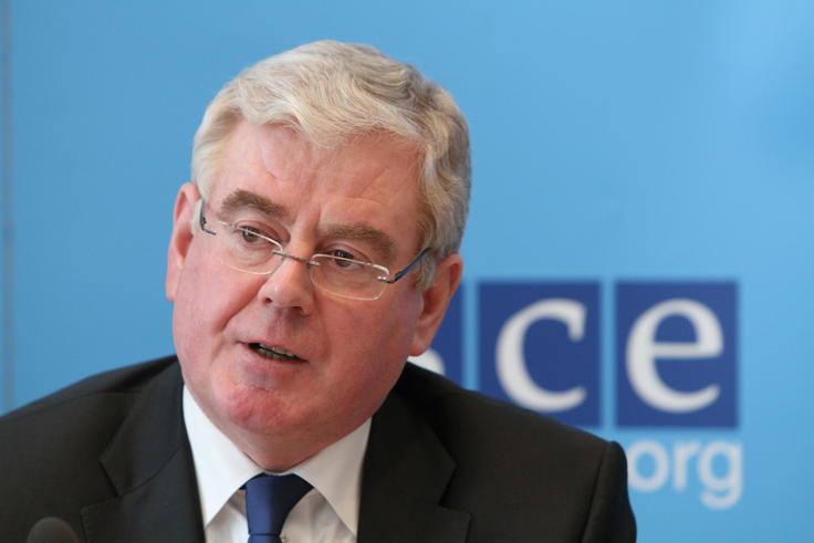 The OSCE Chairperson-in-Office, Irish Deputy Prime Minister and Minister for Foreign Affairs and Trade Eamon Gilmore, speaking at a press conference after opening the first OSCE Permanent Council meeting of the 2012 Irish Chairmanship, Vienna, 12 January 2012.