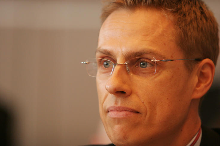 OSCE Chairman-in-Office, Finnish Foreign Minister Alexander Stubb, addresses the Permanent Council in Vienna, 10 April 2008.