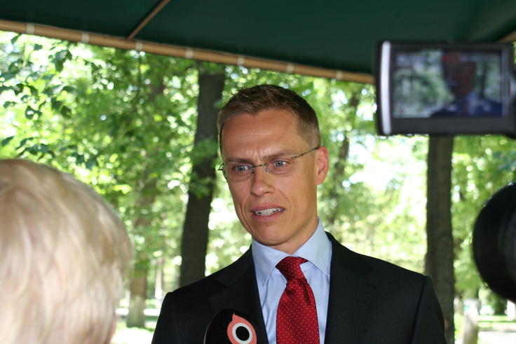 OSCE Chairman-in-Office and Finnish Foreign Minister Alexander Stubb is interviewed during a trip to Bishkek, 1 July 2008.