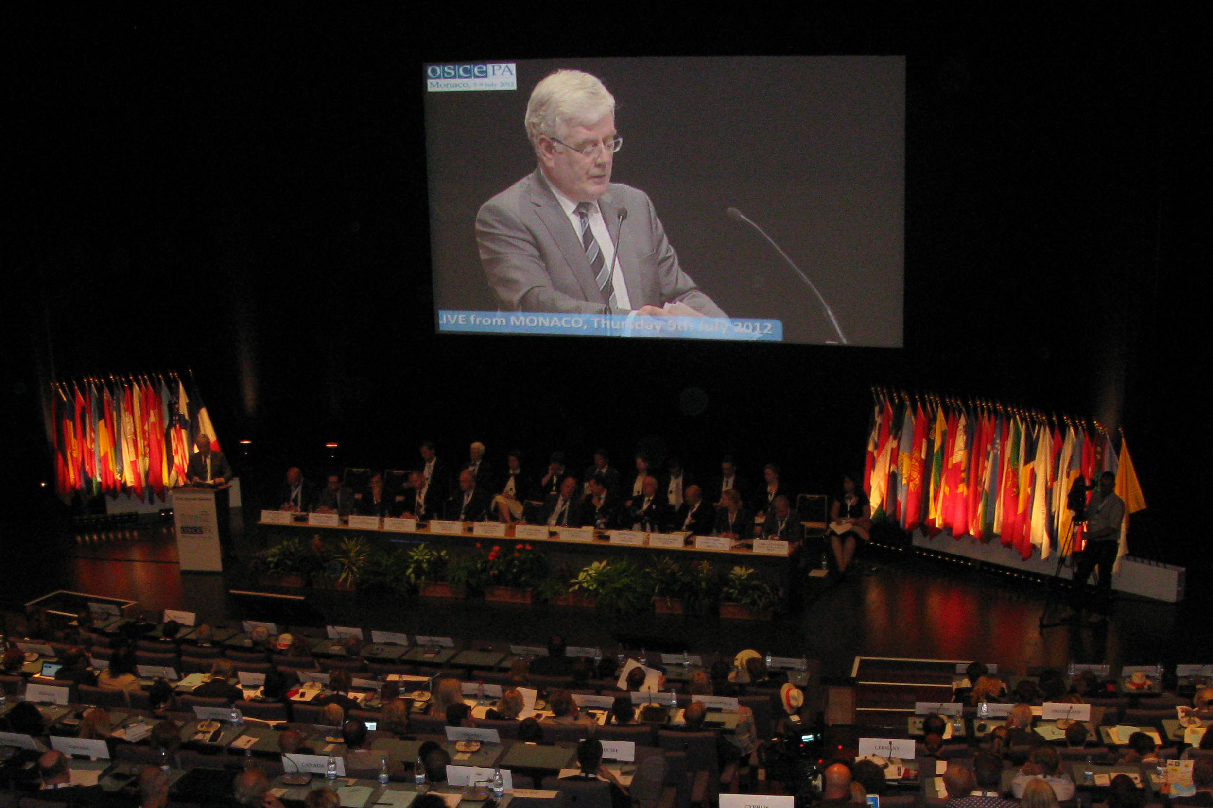 The OSCE Chairperson-in-Office, Ireland's Deputy Prime Minister and Foreign Minister Eamon Gilmore, addressing the Annual Session of the OSCE Parliamentary Assembly, Monaco, 5 July 2012.