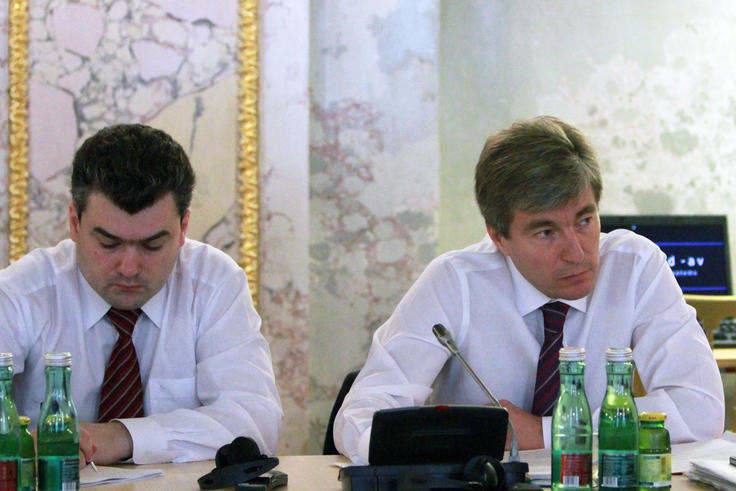 Moldovan chief negotiator Eugen Carpov (r) during official 5+2 talks on the Transdniestrian settlement, Vienna, 12 July 2012.