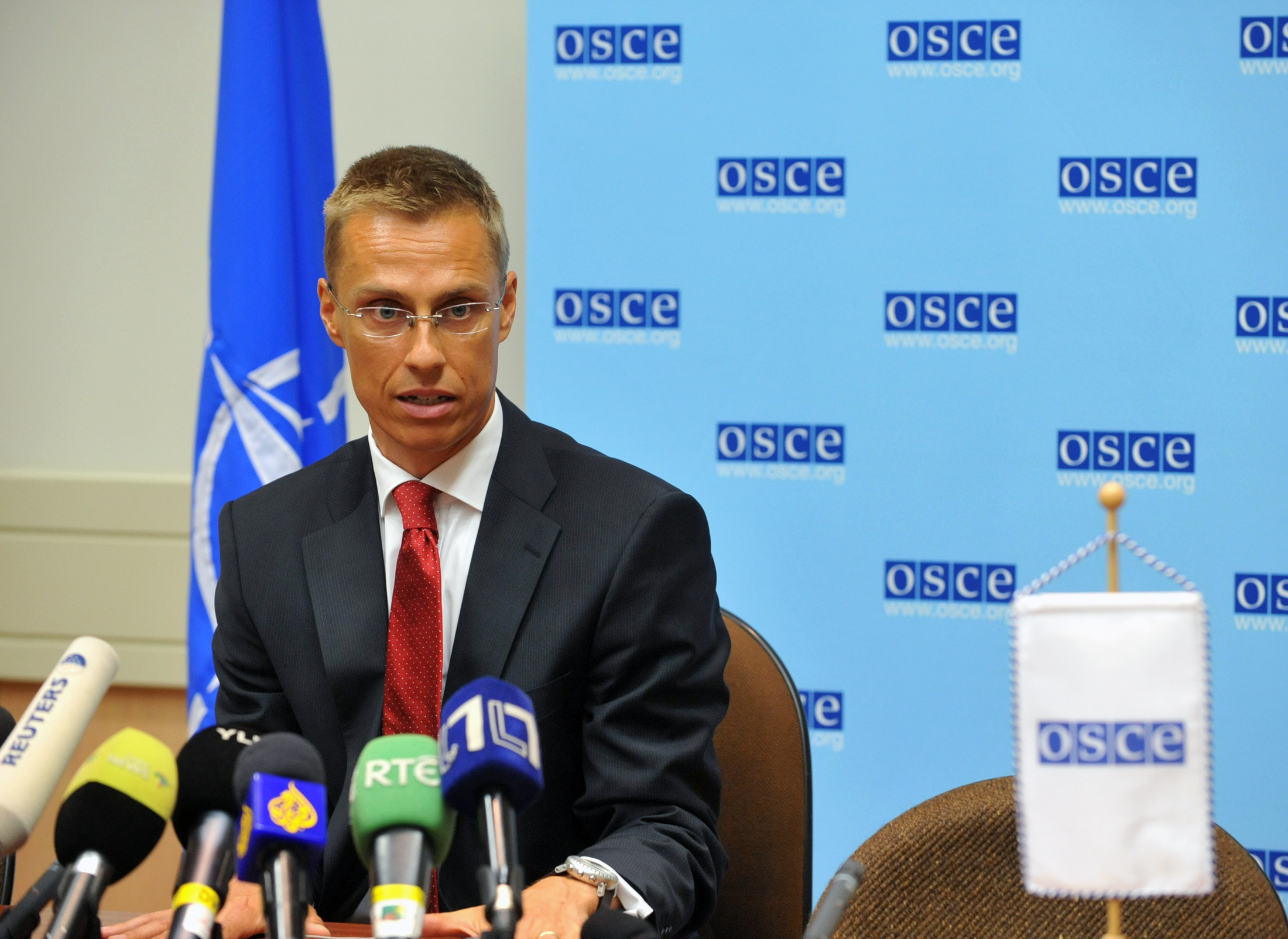 OSCE Chairman-in-Office, Finnish Foreign Minister Alexander Stubb, at a news at NATO, in Brussels, 19 August 2008.