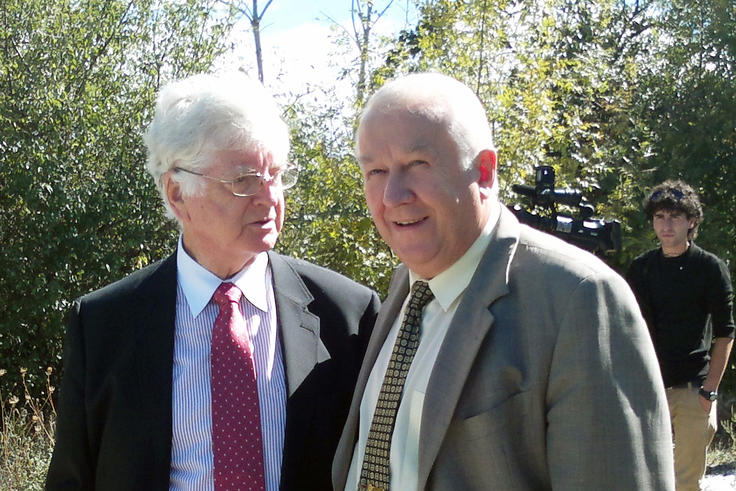 L-r: Ambassador Padraig Murphy, Special Representative of the OSCE Chairperson-in-Office for the South Caucasus and Ambassador Andrzej Tyszkiewicz, Head of the EU Monitoring Mission, speaking ahead of the 26th IPRM meeting, Ergneti, 24 September 2012.