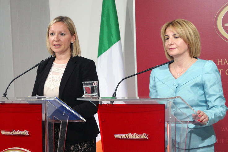 R-l: The Deputy Prime Minister for European Affairs Teuta Arifi and the Representative of the Irish OSCE Chairmanship-in-Office, Minister for European Affairs Lucinda Creighton, addressing journalists, Skopje, 27 September 2012.