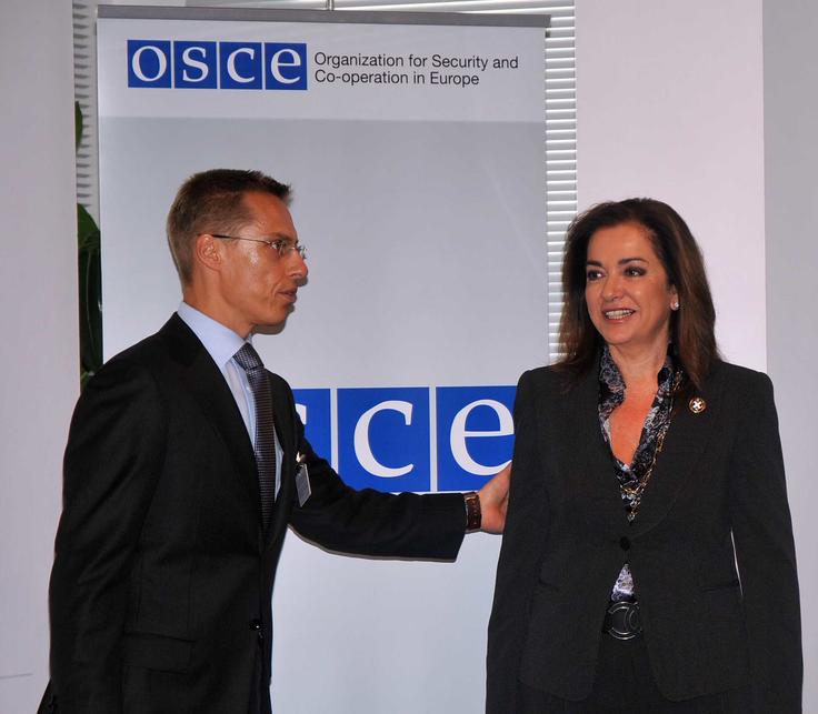 OSCE Chairman Alexander Stubb (left) with Greek Foreign Minister Dora Bakoyannis, in New York, 23 September 2008. Greece will chair the OSCE in 2009.